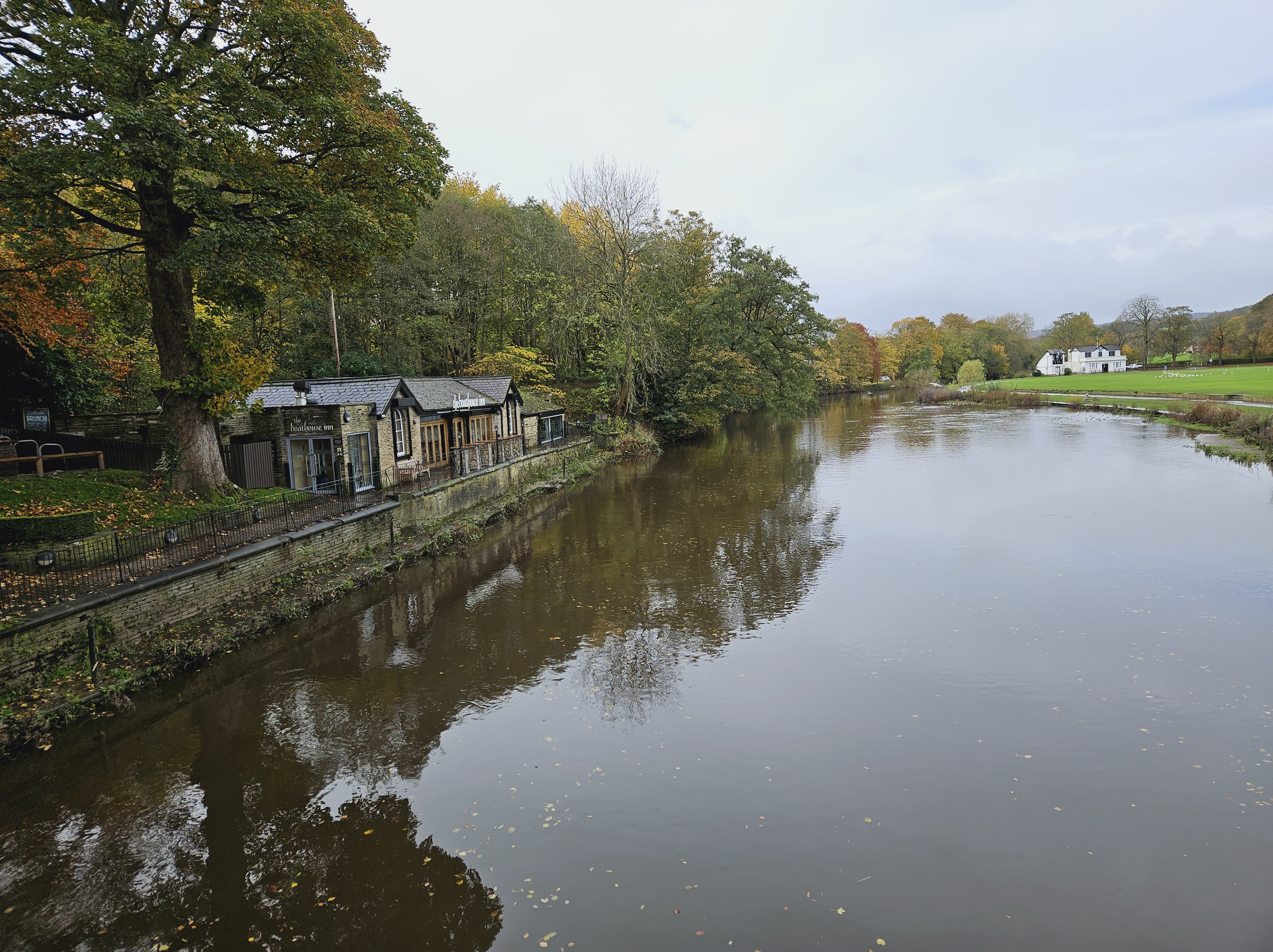We dined in what had been Salt’s communal boat house, wedged between the canal and the river, and spent a happy hour or so gazing over Salt’s park on the opposite bank. The food was OK, too.