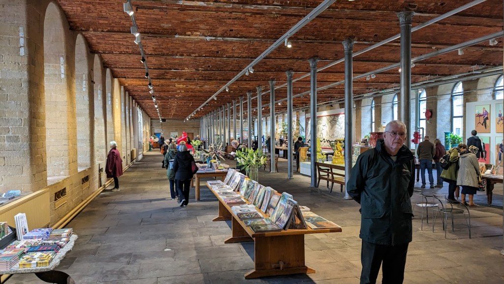 The mill at Saltaire has been repurposed, or at least parts of it have. It’s absolutely enormous, being the first mill to bring all the manufacturing aspects of cloth production under one roof, so there’s a lot of space to fill. I had imagined that it would be shops and offices, and indeed there are retail outlets and offices, but there are also exhibition and performance spaces, as well as very popular restaurant. All these things are required to keep the mill from falling into disrepair, and it was the life’s work of Leeds businessman Jonathon Silver to bring the place back to life. We’ve a lot to thank the (sadly now departed) Mr. Silver for, not least in his friendship with the artist David Hockney, because the mill now contains the largest collection of Hockney works in a single place. I may be a bit of a Philistine when it comes to art, but I appreciate seeing the real thing when I can.