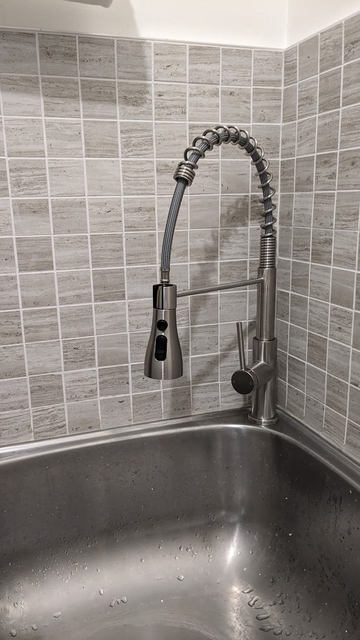 Anyway, the job was completed and so far without any leaks. I even managed to connect hot to hot and cold to cold, despite the feed lines not being marked. The tap’s spray head gives out a groovy net-like spray, too, so it was worth all the effort. I’m not sure when my hands and fingers are going to forgive me, though.