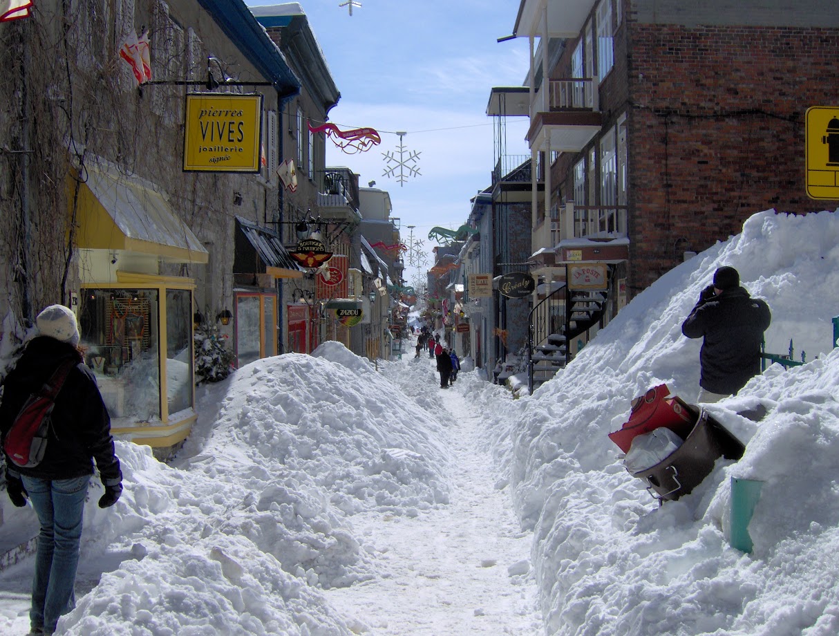 The following day we drove along the St Lawrence River to Quebec City. Yet more snow had fallen and it was waist deep in parts of the old town. It was still seriously below zero as well, but I was starting to acclimatise. Quebec City, though, was a revelation. When we arrived the snow was deep, although paths had been cleared. But, by the following morning, the snow on the roads and sidewalks had gone, almost completely. No, we hadn’t experienced a sudden thaw, but the City Fathers had brought moving equipment in and trucked all the excess snow away. I asked the English speaking co-owner of the hotel what had happened, and he explained that the snow is carted off and dumped in a field on the edge of town. It can still be there in May, he said.