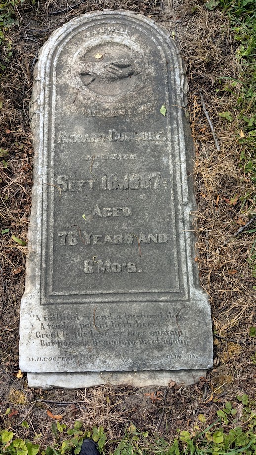 Richard Cudmore stayed in Tuckersmith for the remainder of his life, and died in 1877. He was buried in Turner’s Cemetery, just south of Vanastra, Ontario, between Clinton and Seaforth, and there he remains. It wasn’t hard to located the cemetery, nor the grave, and it was quite the feeling to be close to one of my relatives, but in a country thousands of miles away from our shared homeland. The cemetery is small, but meticulously maintained (by whom I don’t know), and is fittingly surrounded by the rich, arable farmland that Richard had worked.