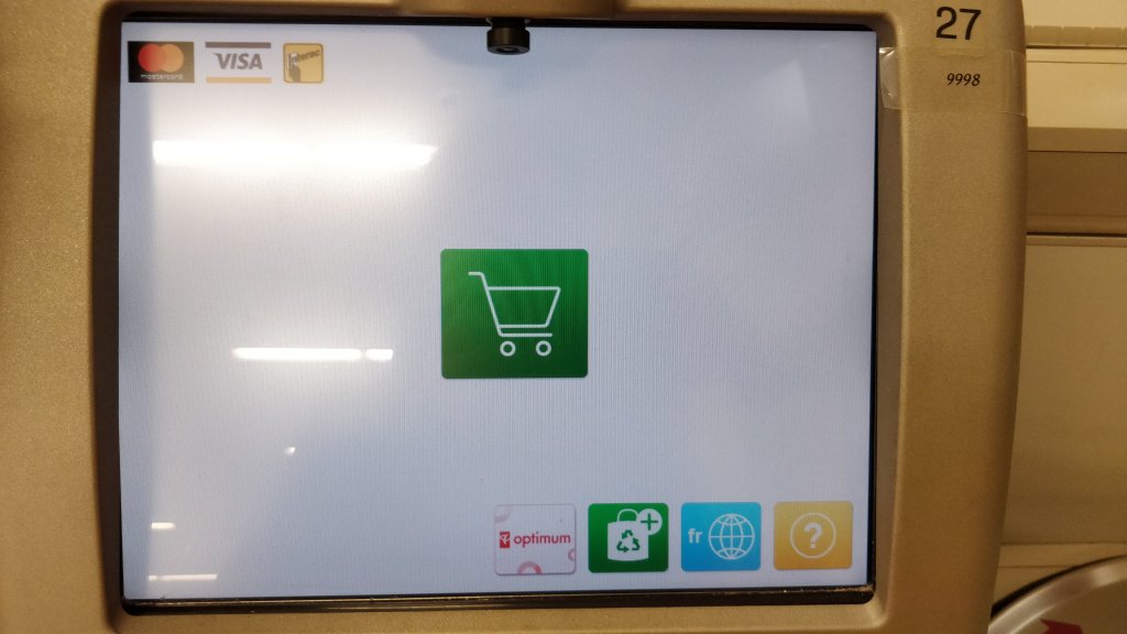 Curiously, when this software was first introduced it garnered so many complaints that it was reissued with a series of written prompts and titles over the icons. I’m OK at reading, as are the vast majority of people who use the Loblaws stores, so I was quite happy to be guided through the process by the software. Now though, with the latest machines installed, they’re back to their “uncluttered” look and it’s an absolute shambles. From that screen, can you see how you’re supposed to enter a four digit fruit code? Can you tell when you’re supposed to activate the Optimum process? To claim points, or indeed to redeem them? Do you know why there’s a French language option when there’s no English words to translate? No on all counts.